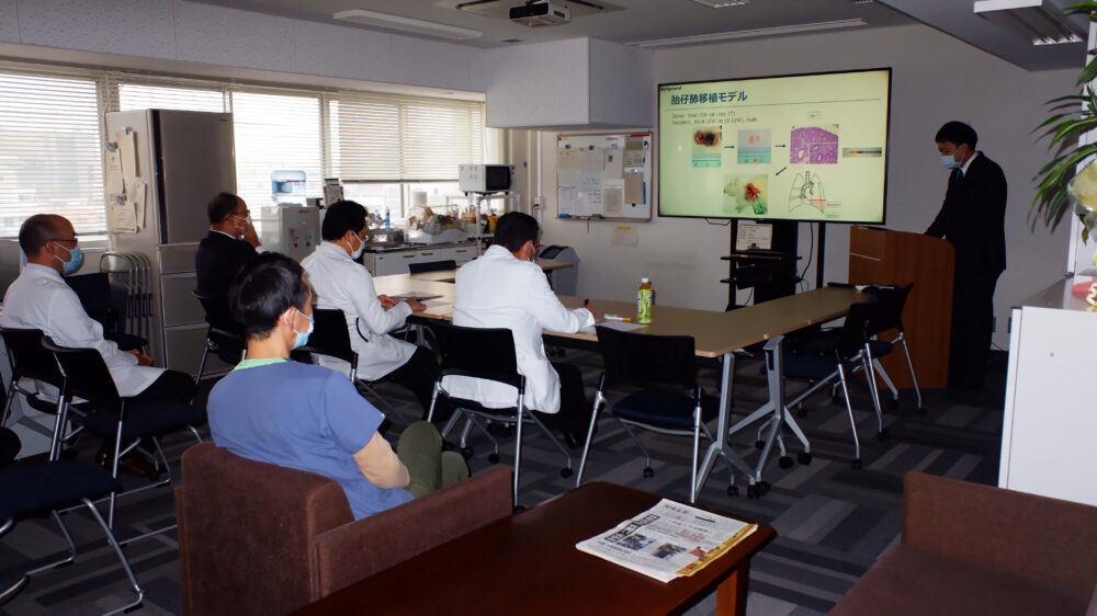 2023年12月20日、医局にて松本大資先生の学位審査が行われました。当科で代々行われている実験系である胎仔肺移植モデルを用い、その生着分化の特徴をさらに深いところまで検討されていました。堂々とした、大変わかりやすいプレゼンテーションで、審査の先生方からも多くのご質問をいただいておりましたが、質問に対する回答も洗練されており、十分な議論がなされたと思っております。研究には色々と大変な面もあったと思いますが、無事に公開審査に至ることができ、医局員一同この日を大変嬉しく思っております。